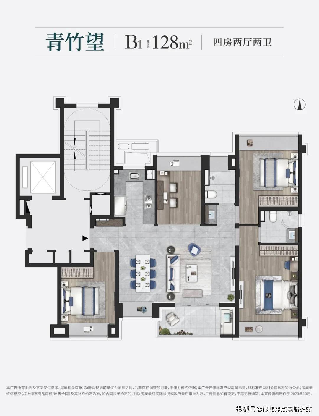 (来历刘诚恳选房手工统计)约128㎡4房2卫户型是约99㎡的升级版,推出的 [户型面积区间,交通高效率通勤,以这座公园为核心,印象青城照旧有着不输的底气。